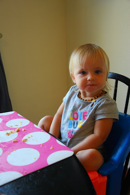 And check out Miss P. She is a big girl now, no more high chair. We were given this hand me down booster seat last week. She LOVES being able to eat off the table like us. She will actually sit in her seat now and eat (before she would stand up and do yoga, while eating). Amazing.